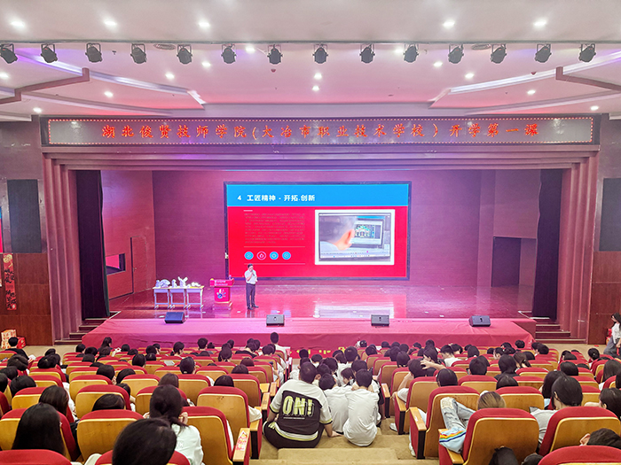 2025年9月4日,湖北俊贤技师学院(大冶市职业技术学院)校园内学风浓厚,国家级非物质文化遗产传承人、湖北技能传承大师尹国安受邀到访,为该校近四百名师生带来题为“弘扬工匠精神,雕刻精彩人生”的开学第一课。这场融合传统技艺与职业教育的讲座,不仅拉开了新学期的序幕,更让“工匠精神”成为学子们职业道路上的重要指引。